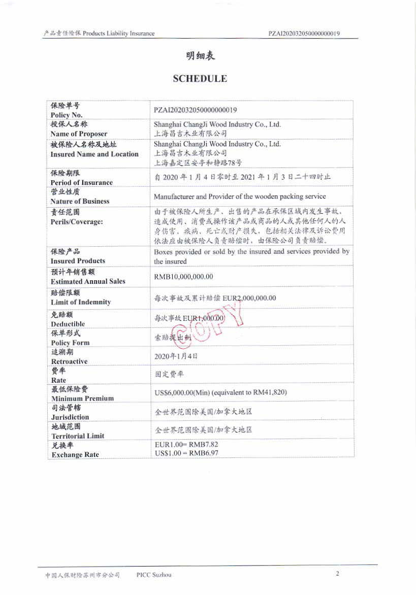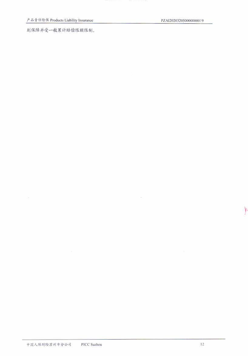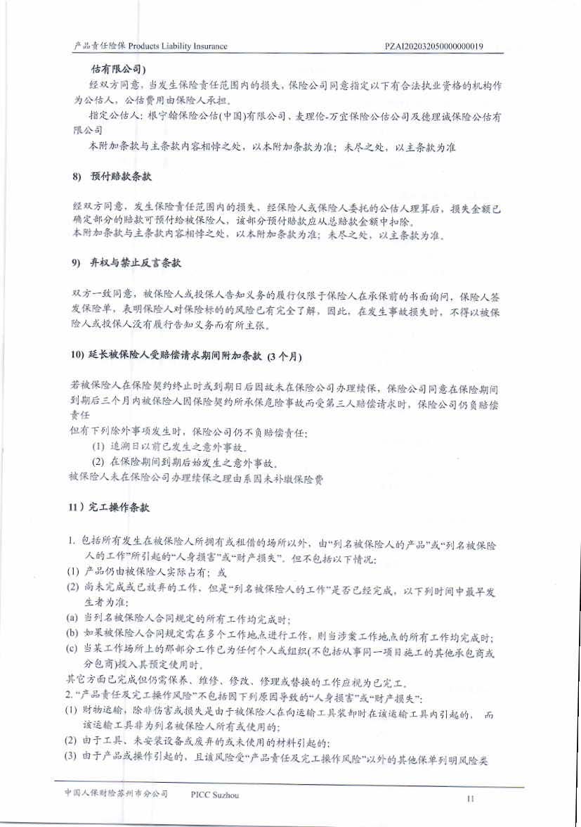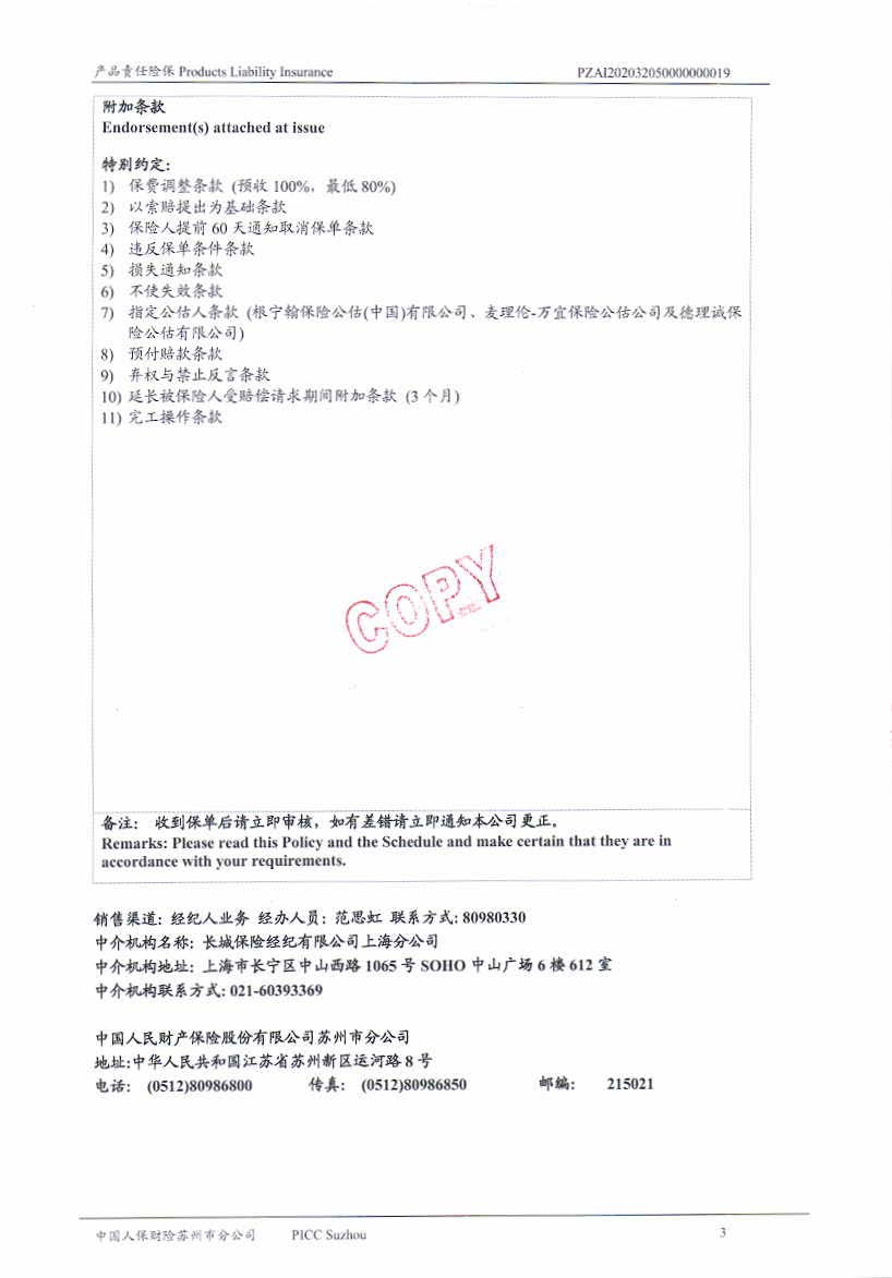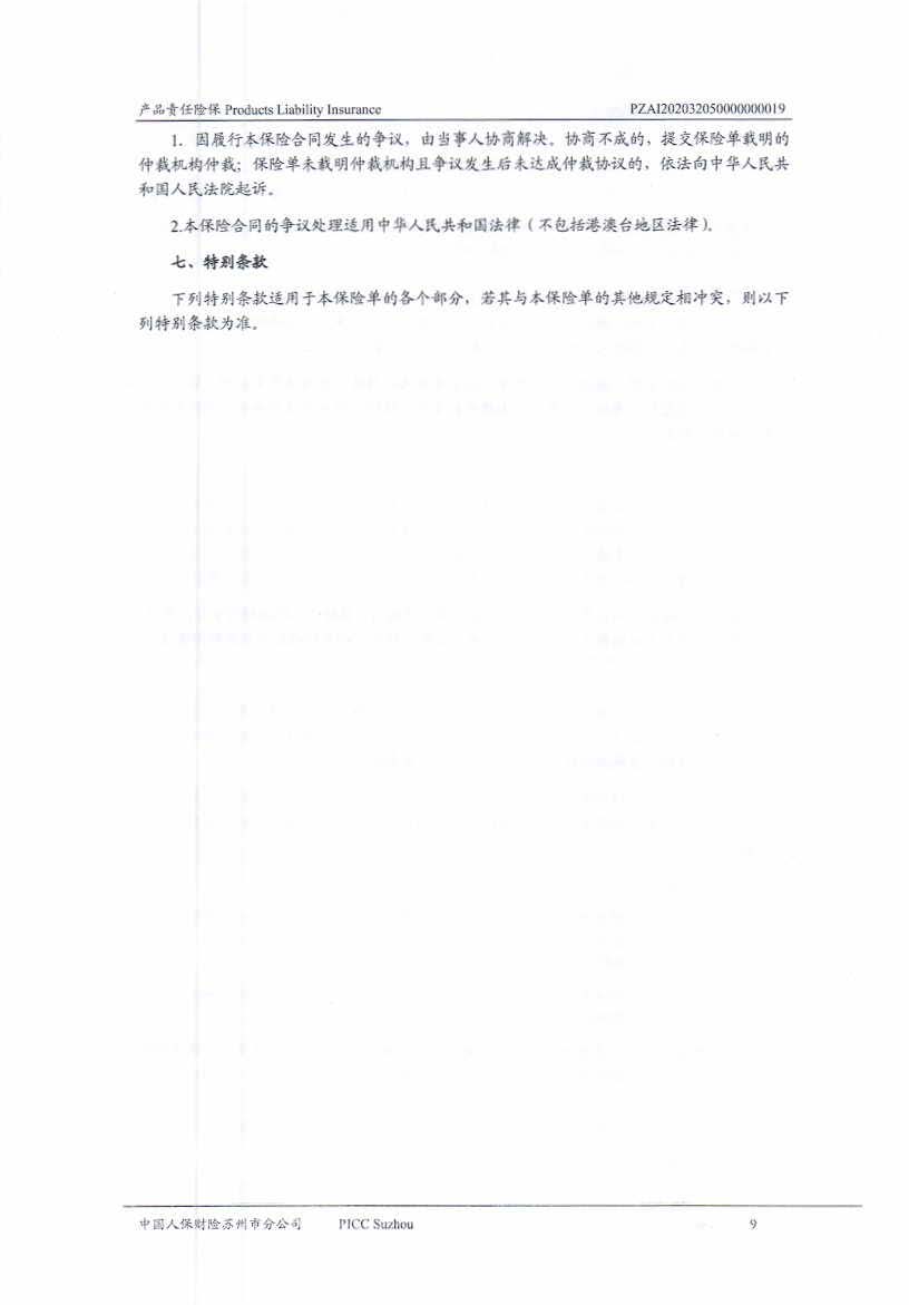 產(chǎn)品責(zé)任保險(xiǎn) Policy No.PZAI202032050000000019(中文版)